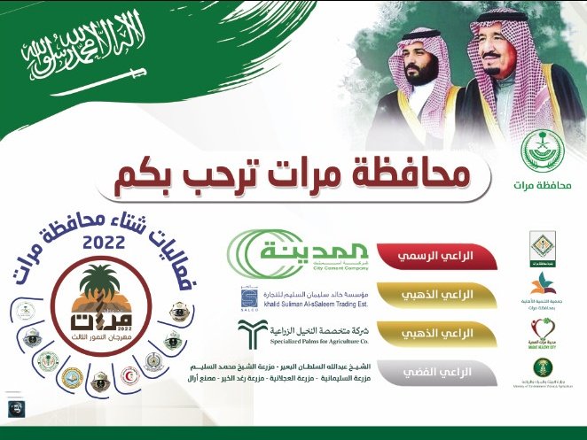تنطلق بعد غدٍ الثلاثاء فعاليات مهرجان التمور في نسخته الثالثة بمحافظة مرات وتستمر حتى يوم السبت 18 ربيع الآخر الجاري، الذي تنظمه جمعية التنمية الأهلية بالمحافظة بالشراكة مع البلدية والجهات الحكومية بالمحافظة.