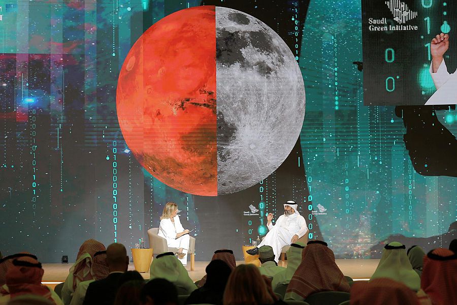 وأكد معالي الوزير السواحه خلال الجلسة أن المملكة بقيادة صاحب السمو الملكي الأمير محمد بن سلمان بن عبدالعزيز آل سعود ولي العهد رئيس مجلس الوزراء – حفظه الله- انتقلت من الطموح إلى العمل خلال السنتين الماضيتين لتمكين الإنسان وحماية الكوكب وتشكيل آفاق جديدة، مشيرًا إلى الجهود الكبيرة التي تبذلها المملكة مستفيدةً من الإمكانات التقنية الهائلة والكوادر الوطنية الرقمية التي تزخر بها، في تسريع مشاريع الطاقة الخضراء والمتجددة والمشاريع السياحة صديقة البيئة ومشاريع احتجاز وتخزين الكربون التي تعتبر الأكبر في العالم، كما سلط معاليه الضوء على نماذج أعمال مبتكرة مبنية على الحلول المستدامة في كل من أرامكو وسابك والبحر الأحمر ونيوم.