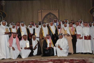 بعد ذلك كرم سمو أمير منطقة جازان الفائزين بالجائزة , فيما قدم هدية لوكيل وزارة الثقافة والإعلام للشئون الثقافية .
