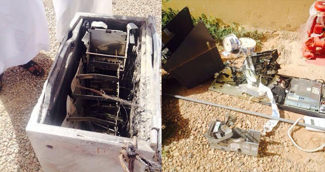 وثانيها البلاغان اللذان تلقاهما مركز شرطة العزيزية الأول بتاريخ 7/5/1435هـ عن انتزاع ماكينة صرف آلي تابعة لأحد البنوك المحلية، وإخراجها من موقعها إلى الشارع، ومحاولة سرقة الأموال منها، والثاني بلاغ مواطن عن تعرض محل الذهب الخاص به للسرقة، بعد صدم الباب بسيارة، حيث سرقت منه مصوغات ذهبية جاوزت قيمتها مليوني ريال، وذلك بتاريخ 10/5/1435هـ، حيث تم التعرف على الجانيين والقبض عليهما، حيث تبين أنهما قاما بتنفيذ الجريمتين باستخدام سيارة سيرا مسروقة من مكتب تأجير.