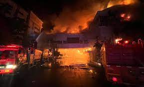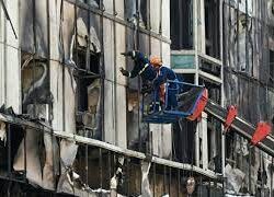 وظل المئات من عمّال الإنقاذ منذ الفجر حول المجمع الكبير الذي لم يبقَ منه سوى أجزاء من الواجهات التي تحولت للون الأسود بسبب كثافة النيران.