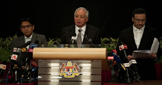 أبلغ رئيس الوزراء الماليزي، نجيب عبد الرزاق، أسرَ ركاب الطائرة المفقودة التابعة لشركة الخطوط الجوية الماليزية، اليوم الاثنين، أن الطائرة أنهت رحلتها في جنوب المحيط الهادي.