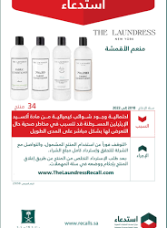 - أعلنت وزارة التجارة عن استدعاء 34 منعّم أقمشة “THE LAUNDRESS”، إنتاج 2018 – 2022.