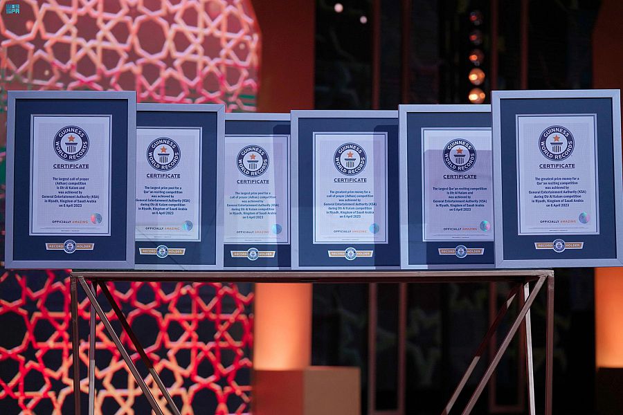 حققت مسابقة القرآن والأذان العالمية “عطر الكلام”، إحدى مبادرات الهيئة العامة للترفيه ست شهادات في موسوعة غينيس للأرقام القياسية، حيث سُجلت كأكبر مسابقة لتلاوة القرآن من حيث عدد المشتركين، وأكبر مسابقة أيضًا للأذان من حيث عدد المشتركين، كما حصدت الرقم القياسي كأكبر جائزة مالية لمسابقة تلاوة القرآن، وأكبر جائزة مالية لمسابقة رفع الأذان.