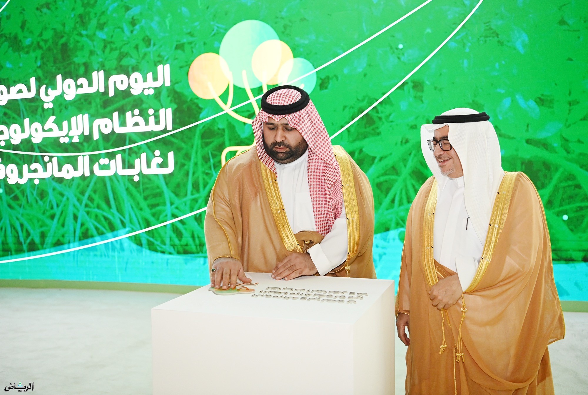 وألقى الرئيس التنفيذي للمركز الوطني لتنمية الغطاء النباتي ومكافحة التصحر الدكتور خالد العبد القادر كلمة أوضح خلالها أن هذه الفعاليات تأتي ضمن احتفال المملكة والعالم بمناسبة اليوم الدولي لصون النظام الإيكولوجي لغابات المانجروف، انطلاقًا من أهمية حماية النظام البيئي لغابات المانجروف، التي أصبحت حماية تفرضها الضرورة، بتكاتف مجتمعي محلي وإقليمي وعالمي، فأشجار المانجروف على قدر كبير من الأهمية لكافة الأنظمة البيئية؛ مستعرضًا فوائد المانجروف العديدة بيئيًّا واقتصاديًّا واجتماعيًّا، فهي موئل للعديد من الكائنات الحية البرية والبحرية والطيور المهاجرة ومصدر أمان غذائي للمجتمعات المحلية، كما أنها تحافظ على التنوع الأحيائي، وتُعَدُّ أكثر الأنظمة البيئية كفاءة في تخزين الكربون وتقليل الانبعاثات، ما يسهم في مكافحة التغير المناخي وتقليل الانبعاثات الكربونية.