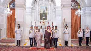 اجتمع صاحب السمو الملكي الأمير محمد بن سلمان بن عبدالعزيز آل سعود ولي العهد رئيس مجلس الوزراء، اليوم، مع رئيسة الهند دروبادي مورمو، وذلك في القصر الرئاسي (راشتر ابتي بهوان) بنيودلهي.