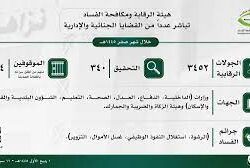 وقالت الهيئة اليوم: بلغ عدد الجولات الرقابية 3452 جولة، وتم التحقيق مع 340، وإيقاف 134 متهماً؛ منهم مَن أُطلق سراحه بالكفالة الضامنة.
