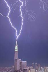 والتقطت عدسة المصور محمد الهذلي صاعقة رعدية تضرب برج الساعة في مكة المكرمة.