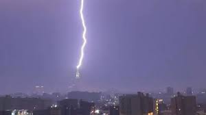 والتقطت عدسة المصور محمد الهذلي صاعقة رعدية تضرب برج الساعة في مكة المكرمة.