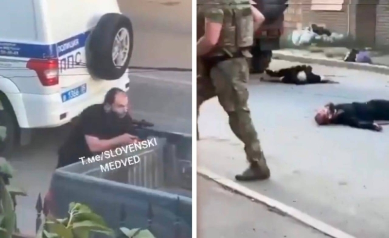 ووثق مقطع فيديو آخر بعض العناصر وهم ممدين على الأرض بعد مقتلهم على يد الشرطة الروسية وأفراد من الجيش.