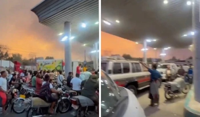 تزاحم عدد كبير من اليمنيين على محطات الوقود بعد الغارات الإسرائيلية التي استهدفت ميناء الحديدة، وأدت لاحتراق منشآت تخزين النفط بالميناء يوم امس السبت.