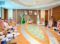 رأس صاحب السمو الملكي الأمير محمد بن عبدالعزيز بن محمد بن عبدالعزيز نائب أمير منطقة جازان رئيس اللجنة الإشرافية للمكتب الإستراتيجي بمنطقة جازان اليوم، اجتماع اللجنة التوجيهية لمتابعة مشروع مطار الملك عبدالله الدولي الجديد، وذلك في مقر الإمارة.