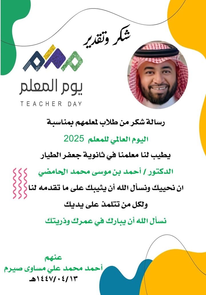 وكل أساتذتنا في جعفر الطيار بلا استثناء