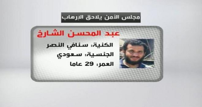 وفي القائمة أيضًا عبدالمحسن عبدالله إبراهيم الشارخ، سعودي الجنسية، وكنيته في القاعدة “سنافي النصر”، وهو مطلوب أمنيا في قائمة الـ85. قاتل في أفغانستان، ونشط مع القاعدة في إيران، ثم أرسل إلى سوريا بعد مبايعة الجولاني للظواهري، ويتزعم حاليًا “النصرة” في اللاذقية. وعلى الرغم من انشغاله في القتال، فإنه نشط على مواقع التواصل الاجتماعي.