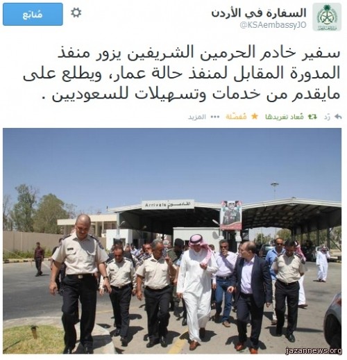 قام سعادة الدكتور سامي بن عبد الله الصالح سفير خادم الحرمين الشريفين لدى الأردن يوم الأربعاء 15/11/1435هـ الموافق 10/09/2014م بزيارة الى منفذ المدورة الحدودي المقابل لمنفذ حالة عمّار .