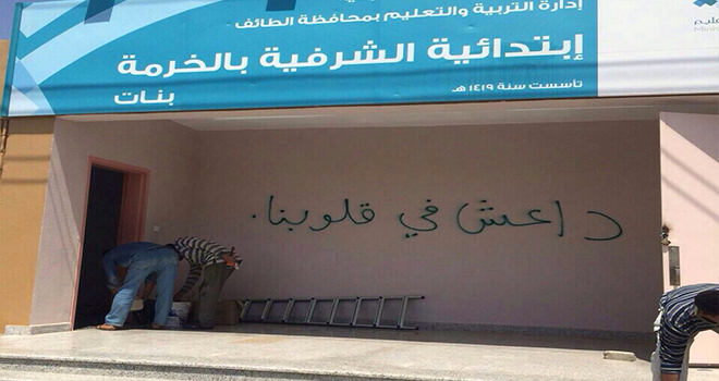 من جهته، أوضح مدير إدارة الإعلام التربوي بتعليم الطائف عبد الله عيضة، أن تعليم الطائف يرفض العبث بأي من الممتلكات العامة، ومنه الكتابة على جدران المدارس، مؤكدًا أن القضية أحيلت إلى الجهات الأمنية. أما إدارة التعليم فستطبق العقوبة التربوية ضد كل من يعبث بالممتلكات العامة.