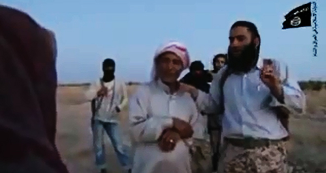 ويظهر في الفيديو والد الفتاة الذي ينفذ عملية الرجم مع عناصر تنظيم “داعش”، بعد رفضه مسامحة ابنته، ثم يظهر وهو يجرها بحبل إلى الحفرة، ويبدأ الجميع برجمها بالحجارة على رأسها بينما هي تنطق الشهادتين.