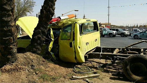 وأوضح المتحدث الرسمي للدفاع المدني العقيد ابراهيم أبا الخيل، أنه وقع حادث مروري صباح الأحد (26 أكتوبر 2014) لسيارة انقاذ تابعة للدفاع المدني على طريق الصباخ جنوب بريدث، وباشرت الجهات المختصة الحادث، حيث اطمأن مدير الدفاع المدني بمنطقة القصيم اللواء علي بن عطا الله العتيبي على قائد المركبة التابعة للدفاع المدني الذي أصيب نتيجة الحادث.
