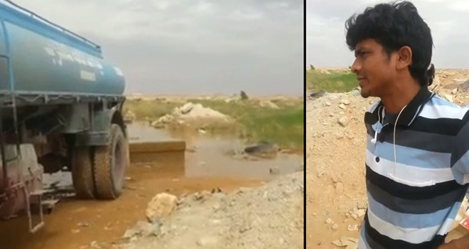 تناقل نشطاء مقطع فيديو لسائق وايت مياه مكتوب عليه “ماء صالح للشرب .سقيا المواطنين بالمجان” يقوم بسحب مياه المجاري من موقع يتضح فيه بحيرة صرف صحي، دون مبالاة للأنظمة والعقوبات.