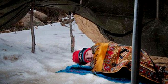 ويضيف جلال باكيًا: “وصل ارتفاع الثلوج إلى نحو 90 سنتيمترًا. لا أبالغ لو قلت لك إن دموع الرجال والنساء والأطفال في مخيمات سهل البقاع في لبنان تكاد تتجمد على خدودهم من الصقيع الذي يمر على المنطقة وهم يسعفون فلذات أكبادهم”.