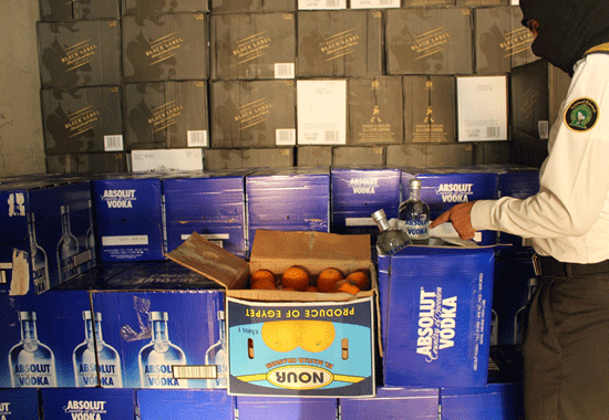 شَهِد جمرك البطحاء إحباط محاولة تهريب كمية كبيرة من الخمور بلغت ثلاثين ألفا وستمائة وثماني عشرة زجاجة خمر مُنوّعة كانت مُخبأة ضمن إرسالية برتقال وردت للجمرك.