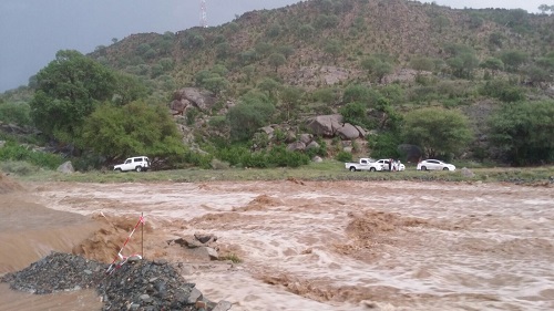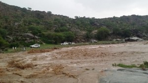 هطول أمطار غزيرة على جبال هروب ووادي رزان