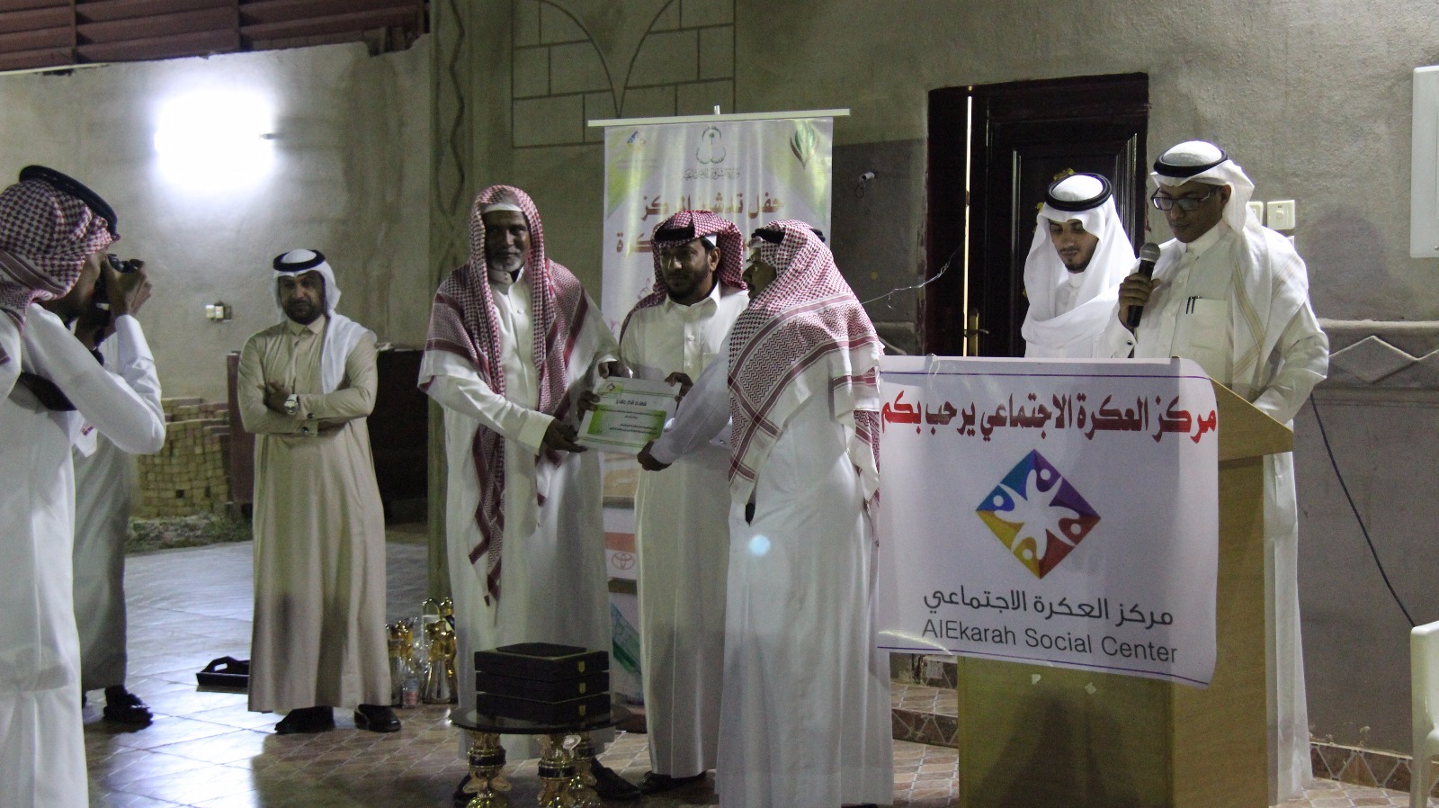 بحضور شيخ قرية العكرة الشيخ محمد يحيى عكور وعدد كبير من أهالي القرية والصحفيين والضيوف من رؤساء المراكز الاجتماعية دشن الأستاذ هادي بن حسن مدخلي رئيس لجنة التنمية الاجتماعية الأهلية أعمال وبرامج مركز النشاط الاجتماعي بقرية العكرة حيث بدأ الحفل بكلمة مدير المركز الأستاذ يحيى احمد عكور ثم كلمة شيخ القرية الشيخ محمد يحيى عكور تلى ذلك كلمة رئيس اللجنة الأستاذ هادي حسن مدخلي بعد ذلك شاهد الجميع مونتاج يشرح أهداف ورؤية المركز بعدها قصيدة مصوره للشاعر الأستاذ عبدالله علي عكور بعنوان في هوى العكرة ثم عرض مشهد هادف من إخراج الدكتور موسى محمد عكور وتمثيل وليد محمد عكور واختتم الحفل بالسحب على جهازي جوال ثم تكريم المشاركين والداعمين والفائزين بمسابقة تصميم شعار النادي .