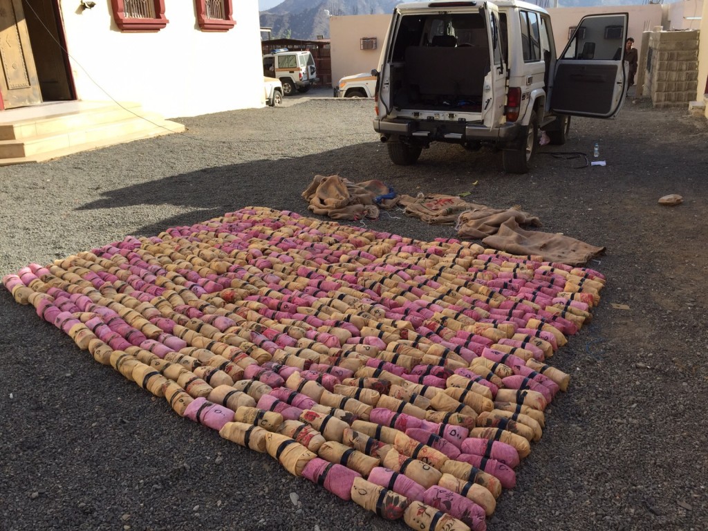 مشيرا إلى تمكن رجال اﻷمن من إحباط تهريب 309 حزمة من القات المحظور بمحافظتي ضمد وبلغازي كانت مخبأه بأسلوب إجرامي مبتكر بمركبتين من نوع هايلوكس ودينا.