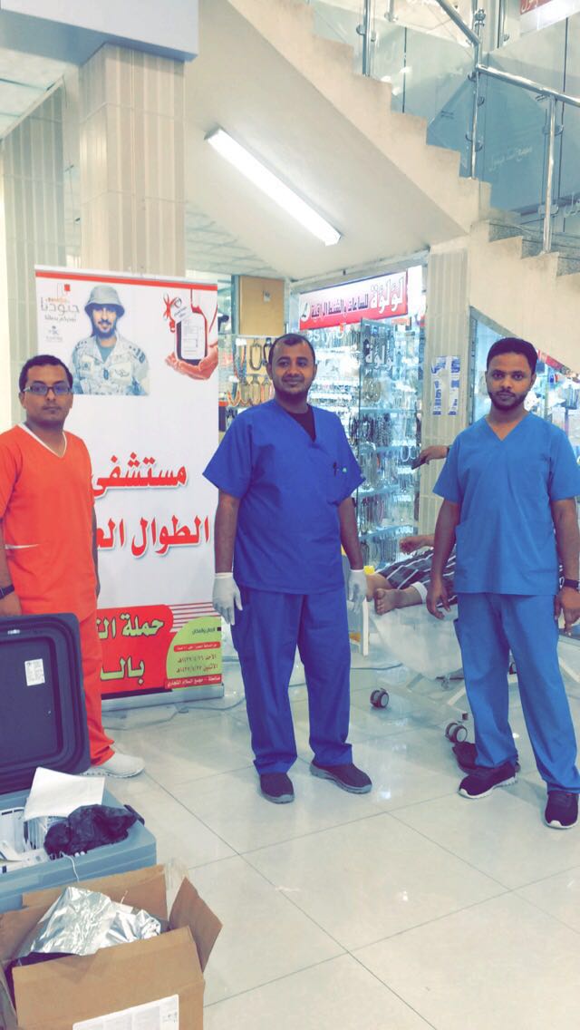 نظم مستشفى الطوال العام حملة التبرع بالدم المقدمة لصالح جنودنا البواسل وبالتعاون مع إدارة المختبرات وبنك الدم؛ وذلك بمجمع السلام مول بمحافظة صامطة تحت عنوان”جنودنا نفديكم بدمائنا”.