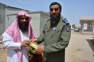 زار فضيلة مدير عام فرع وزارة الشؤون الإسلامية والدعوة والإرشاد الشيخ أحمد بن عيسى الحازمي وحدة أمن وحماية مطار الملك عبد الله بن عبد العزيز الدولي بجازان وقاعدة الدفاع الجوي وأسطول الأباتشي وكان في استقباله النقيب طيار عبد الله الدوسري والنقيب طيار رازب القحطاني والقى كلمة توجيهية ودعوية حث فيها منسوبو أمن المطار وقائدي طيران الأباتشي بالثبات عند مواجهة العدو والصبر والسلون واستحضار النية الخالصة لله وحده مبينا لهم أن ماهم فيه إنه لخير عظيم وجهاد في سبيل الله وحماية الوطن من كيد الأعداء وعبث الفجار وتمنى فضيلته أن يكون بينهم حاملاً سلاحه والمشاركة في دحر هذا العدو الغاشم ثم ذكر لهم بعضا من بطولات الرسول صلى الله عليه وسلم وصحابته الكرام وتابعيهم وإقدامهم في المعارك لا يخشون في الله لومة لائم وفِي ختام حديثه دعى لهم بالنصر والتمكين وأن يديم على هذه البلاد أمنها وأمانها واستقرارها . وأن يرحم الشهداء ويشفي المصابين وأن يعيدهم الى أهليهم سالمين منصورين .. وفِي نهاية الزيارة قدم الحازمي درعاً تذكارياً لسعادة المقدم فواز بن عائض العسيري قائد وحدة أمن وحماية مطار الملك عبد الله بجازان تسلمه نيابة عنه النقيب رازب القحطاني كما قدم شهادة شكر وتقدير لسعادة الرقيب أول عبد الله بن محمد عبسي مدير الشؤون الدينية بوحدة أمن وحماية المطار كما أهدي لكل من منسوبي وحدة أمن المطار وقائدي طائرات الأباتشي العديد من الحقائب المخصصة للجنود المرابطين والتي تحتوي على مصحف وحصن المسلم وبعض من كلمات وتوجيهات العلماء ومن ثَم توجه الجميع لتناول طعام الغداء . وقد رافق فضيلة الشيخ الحازمي في جولته الدعوية الشيخ محمد بن منصور فرجي مدير مركز الدعوة بمحافظة الحرث والشيخ إبراهيم شعبي ومنسق العلاقات العامة بإدارة المساجد والدعوة والإرشاد بمحافظة الحرث الأستاذ ناصر قحل .