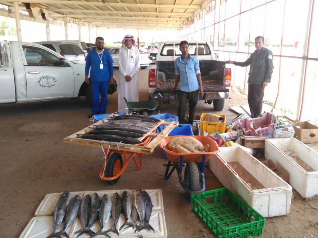 اكثر١٥٠كيلو من الاسماك و الخضار والفواكة الغير صالحة للاستهلاك الادامي وكذلك ضبط المخابز الالية المخالفة الاشتراطات الصحية وتحرير مخالفات بحق المخالفين وإتلاف المضبوطات حسب الانظمه والتعليمات المتعبه لذلك