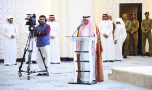 إثر ذلك ألقى صاحب السمو الملكي الأمير محمد بن ناصر بن عبدالعزيز أمير منطقة جازان كلمة قدم خلالها الشكر والتقدير لكافة رجال الأمن، ورجال القوات المسلحة لما يقدمون من تضحيات وبطولات للحفاظ على أمن الوطن واستقراره ووحدته في ظل قيادة خادم الحرمين الشريفين الملك سلمان بن عبدالعزيز آل سعود ، وسمو ولي عهده الأمين وسمو ولي ولي العهد – حفظهم الله – .