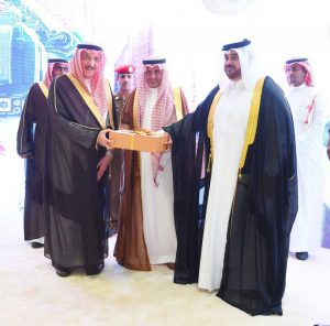 وفي ختام الحفل سلّم سمو أمير منطقة جازان الهدايا للواء متقاعد ناصر بن صالح الدويسي .