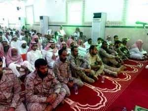 تقدم محافظ أبي عريش الأستاذ / محمد بن لبدة اليوم السبت الموافق 6/11/1438 هـ جموع المصلين على جثمان الشهيد محمد موسى نشيلي الذي استشهد في ميدان العز والشرف والبطولة دفاعاً عن أمن وحدود الوطن والذود عن مقدساته في الحد الجنوبي يرافقه شيخ شمل قبائل المسارحة الشيخ حسين أحمد إدريس فقيهي وشيخ قبيلة البكارية الشيخ موسى محمد بكري وعدد من ضباط وأفراد القوات المسلحة.