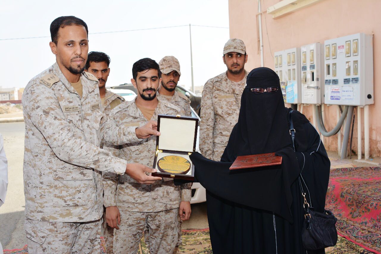 عقب ذلك كرم قائد السرية النقيب محمد المحياني ، مديرة المركز الاستاذة عائشة الشبيلي بدرع تذكاري وشهادة شكر بهذه المناسبة من قبل القوات المسلحة عرنافا لمبادرتهم ووقوفهم ودعمهم للجنود المرابطين بالحد الجنوبي.