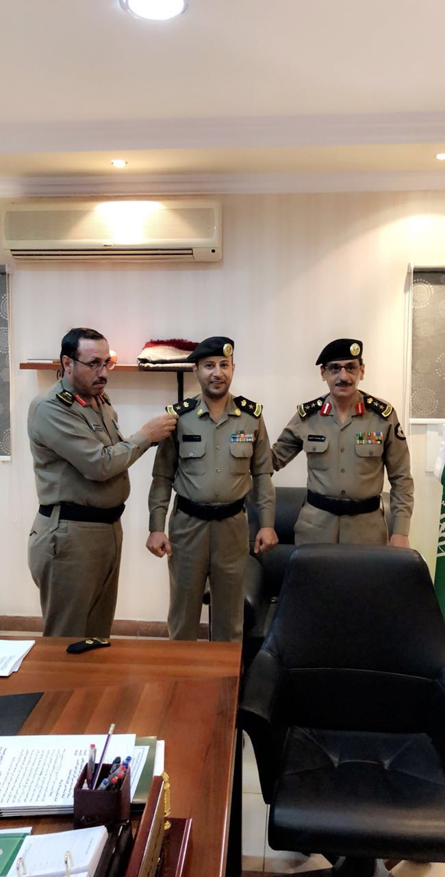 قلد مدير الإدارة العامة للمتابعة بالأمن العام اللواء عبدالله محمد الغامدي المقدم عبدالرحمن بن علي الزهراني رتبته الجديدة، بحضور العقيد فهد الشعيل.