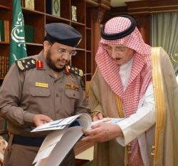 كما تسلم سموه تقريرين عن انجازات الدفاع المدني بالمنطقة للعام الماضي ، واليوم العالمي للتطوع والأعمال والتي تتضمن ما قام به الدفاع المدني بالمنطقة من اعمال وجهود خلال الفترة الماضية وأبراز مشاركة الفرق التطوعية في كافة الأحداث.