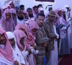 وتقدم المصلين محافظ بيش الاستاذ حسن ابو شرحة و رئيس مركز الخلاوية الاستاذ علي حملي وعدد من منسوبي القوات البرية و الجهات الأمنية والعسكرية وجمع من أهالي محافظة.