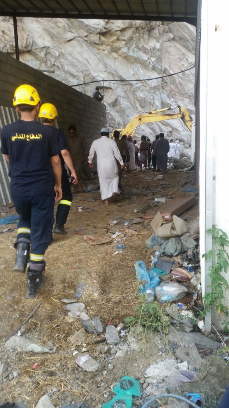 وأضاف: تواجدت فرقة إسعافية مع فرق الدفاع المدني في موقع الانهيار حتى الساعة الخامسة والنصف من صباح هذا اليوم الخميس، ولَم تباشر أي إصابات أخرى ولله الحمد نتيجة الانهيار الذي أتى على عدد من السيارات كانت متوقفة بالقرب من المباني المجاورة للجبل.