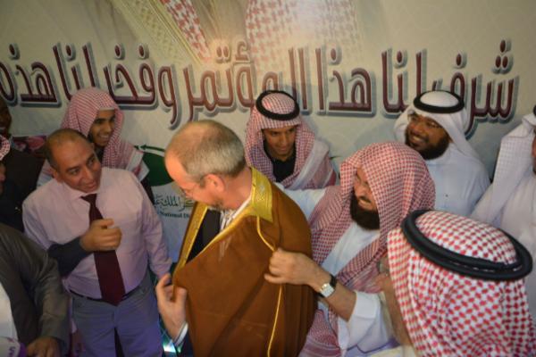قام الرئيس العام لشؤون المسجد الحرام والمسجد النبوي الشيخ عبدالرحمن السديس بخلع عباءته وإلباسها وألبسها للهولندي الذي اعتنق الإسلام بعد إنتاجه الفيلم المسيء عن الرسول “أرنود فان دورن” بعد انتهاء الجلسة الأولى في مؤتمر “الحوار وأثره في الدفاع عن النبي صلى الله عليه وسلم الذي بدأت أعماله صباح اليوم، مما أثار إعجاب حضور المؤتمر الذي يشارك فيه 250 من الأكاديميين والمتخصصين والباحثين من 51 دولة، والذي تنظمه جامعة الإمام محمد بن سعود الإسلامية، وناقشت الجلسة الأولى ثمانية موضوعات عن أسس الوسطية والتسامح ومنهج الصحابة في الدفاع عن النبي والحرية الدينية ومبادئ الحوار ومقاصده المهمة في الدفاع عن الرسول.