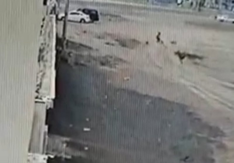 وظهر بالفيديو هجوم مجموعة كبيرة من الكلاب على الطفل بالقرب من منزل والده، ولكن نجا منها بعد أن قاومها.