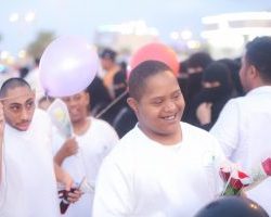 وبين المعتبي أن الفعاليات بدأت بمسيرة لمركبات القطاعات الحكومية حيث أقلت كل مركبة طفلا من المركز مع أخصائي تنقله من مقر المركز بالكورنيش الجنوبي إلى مقر الاحتفال في الكورنيش الشمالي ويرافقهم أحد المسؤولين من نفس الجهة بعدها يتم استقبال الطفل بهديه حال نزوله ومجموعة من الأطفال في ممر خاص بهم أعد لاستقبالهم بمدخل الكورنيش