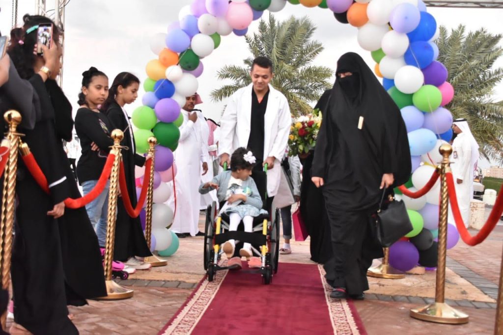 وبين المعتبي أن الفعاليات بدأت بمسيرة لمركبات القطاعات الحكومية حيث أقلت كل مركبة طفلا من المركز مع أخصائي تنقله من مقر المركز بالكورنيش الجنوبي إلى مقر الاحتفال في الكورنيش الشمالي ويرافقهم أحد المسؤولين من نفس الجهة بعدها يتم استقبال الطفل بهديه حال نزوله ومجموعة من الأطفال في ممر خاص بهم أعد لاستقبالهم بمدخل الكورنيش