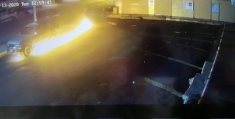 ووثق مقطع فيديو الحادثة يوم أمس حيث ظهرت المركبة متوقفة أمام عددٍ من المحال التجارية فيما قام شخصٌ بسكب مادة بترولية عليها ومن ثم اضرام النار فيها قبل أن يلوذ بالفرار.