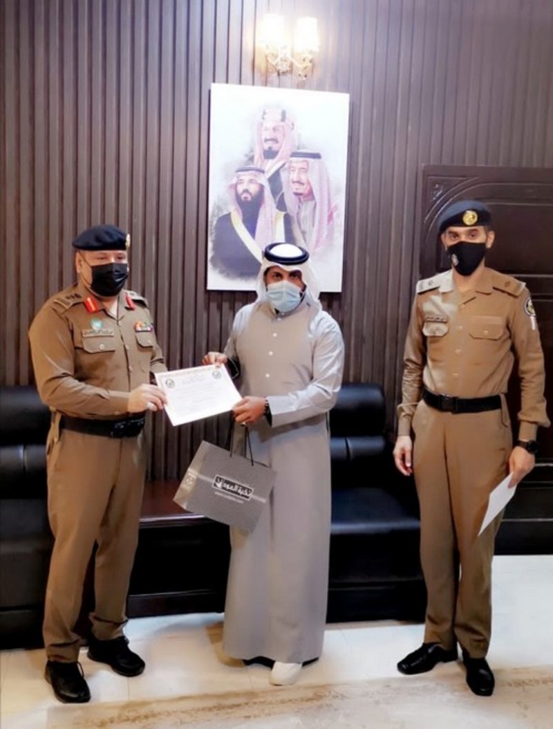 كرم قائد القوات الخاصة لأمن الطرق بمنطقة جازان، العقيد عبدالله بن أحمد العقيبي، اليوم، المصور حمزة عقيبي، بحضور الرائد تركي السرحاني.