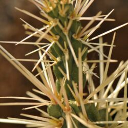 وأضاف: هذا النبات عبارة عن سوق عصارية شوكية، قد يرتفع لنحو المتر، تتوزع الأشواك به على الساق في نمط كثيف، ويحوي النبات نمطين من الأشواك: كبيرة بطول يتراوح من 1 – 7 سم ، ونمط آخر دقيق لا يتعدى نصف ملليمتر في الطول.