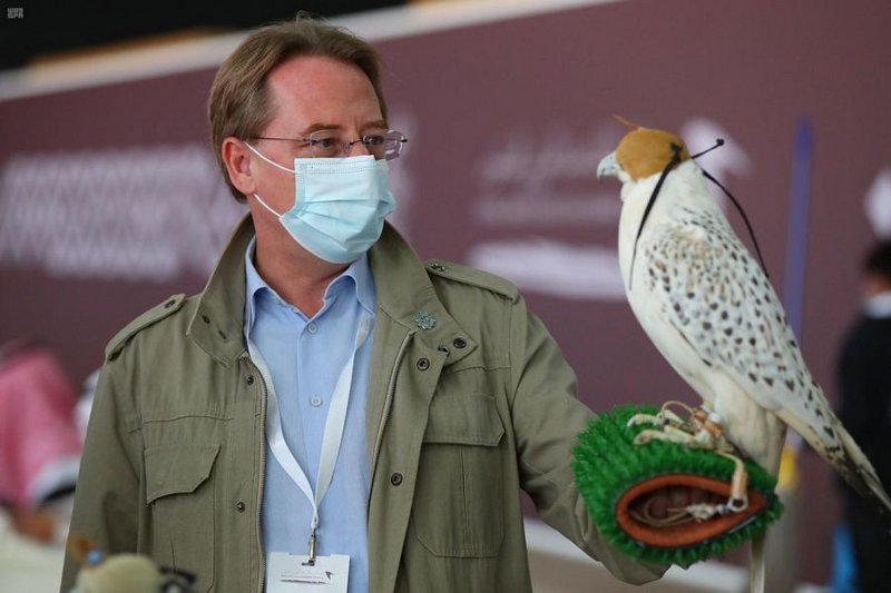 وأبدى السفير إعجابه بالمهرجان وتجول في أروقته، والتقى الصقارين؛ حيث تعرف على أنواع الصقور وفئاتها، وتابع مجموعة من الصقور أثناء قطعها مسافة شوط مسابقة الملواح، البالغة 400 متر.