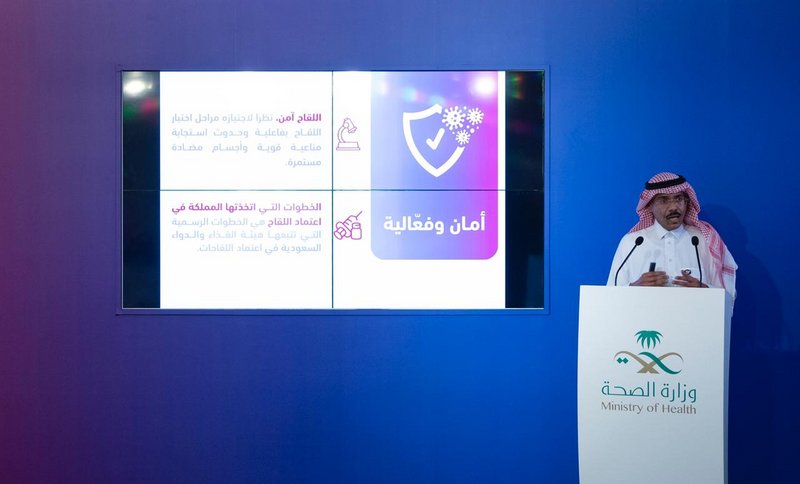 أكد مساعد وزير الصحة المتحدث الرسمي للوزارة د. محمد العبدالعالي أن الخطوات التي اتخذتها المملكة في اعتماد اللقاح، هي الخطوات الرسمية التي تتبعها هيئة الغذاء والدواء⁩ السعودية في اعتماد اللقاح، وهي من الهيئات المرموقة على المستوى العالمي.
