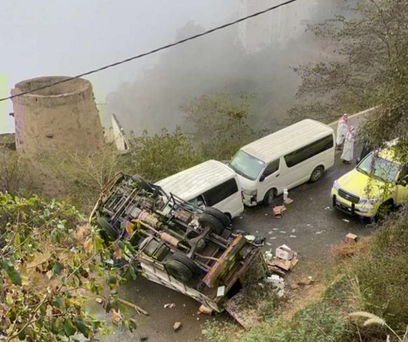 وكانت مركبة نقل النفايات التابعة لمتعهد النظافة ببلدية محافظة فيفاء تعرضت لانزلاق أثناء هطول الأمطار؛ ما تسبب في سقوطها من أعلى الجبل، ونتج عن ذلك وفاة أحد العمال وإصابة آخر.