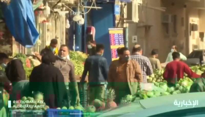 من جهته، وصف مراسل القناة من مكان وجوده وسط مدينة الرياض في سوق منفوحة القديم من شوارع بيع الخضار المشاهد بالعشوائية المقلقة والتجمعات التي لا تتقيد بالإجراءات الاحترازية التي أعلنت عنها مؤخرًا، ومنها لبس الكمامات بشكل خاطئ!